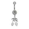 Deze navelpiercing is gemaakt van hoogwaardig chirurgisch staal 316L. De materiaaleigenschappen omvatten hoge kwaliteit, vlakheid en duurzaamheid. Het bovenste bolletje kan worden losgeschroefd terwijl het onderste motief vastzit aan het staafje. De hanger is gemaakt van verzilverd messing.