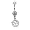 Bij deze navelpiercing is de staaf en de afschroefbare bal uit chirurgisch staal 316L van hoge kwaliteit vervaardigd. De hanger is gemaakt van verzilverd messing. De navelpiercing is verkrijgbaar met een staafdikte van 1,6 mm en een staaflengte van 10 mm. Diameter van het balletje bedraagt 5mm. De diameter van het motief bedraagt 13 mm.