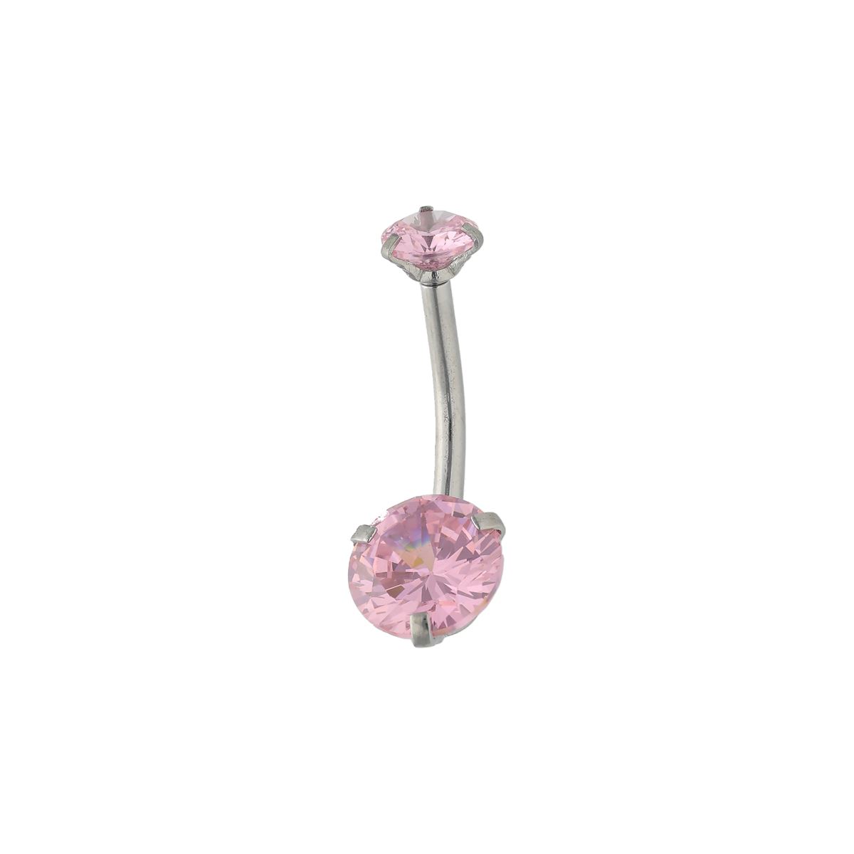 Navelpiercing in chirurgisch staal, roze kristallen met innerlijke schroefdraad