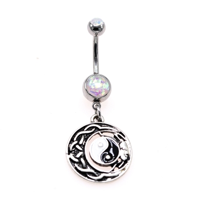 Navelpiercing in chirurgisch staal, ying yang hanger