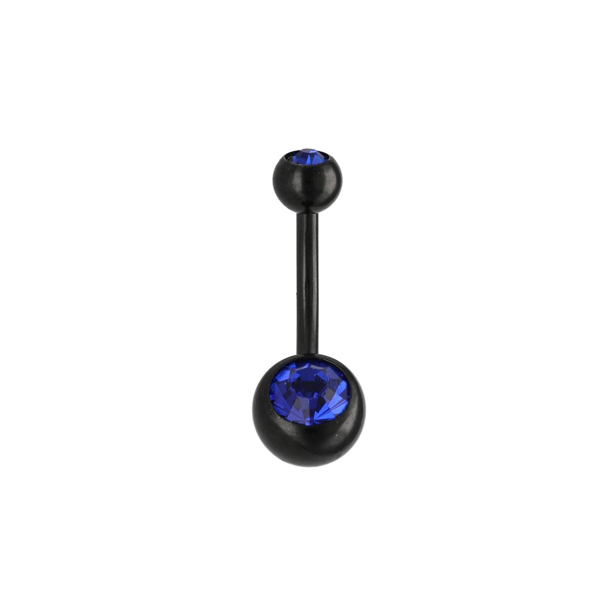 Navelpiercing in chirurgisch staal, zwart met 2 donker blauwe kristallen