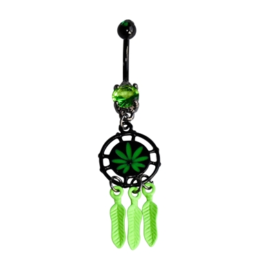 Navelpiercing in chirurgisch staal, zwarte dromenvanger met logo cannabis