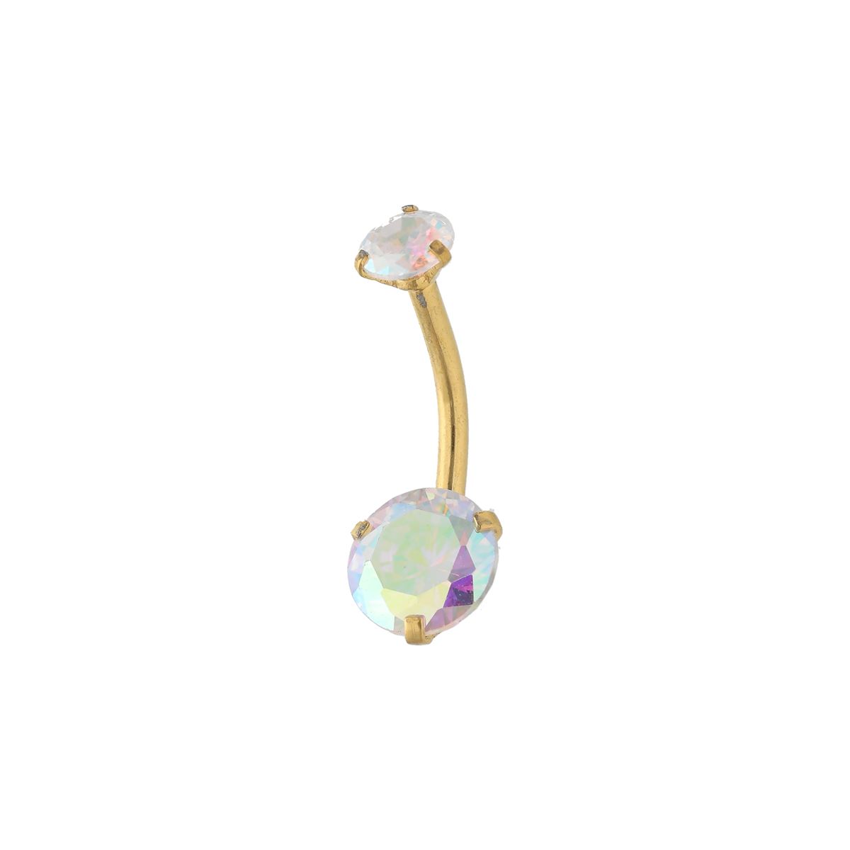 Navelpiercing in goud chirurgisch staal met 2 A.B. "prong" setting kristallen