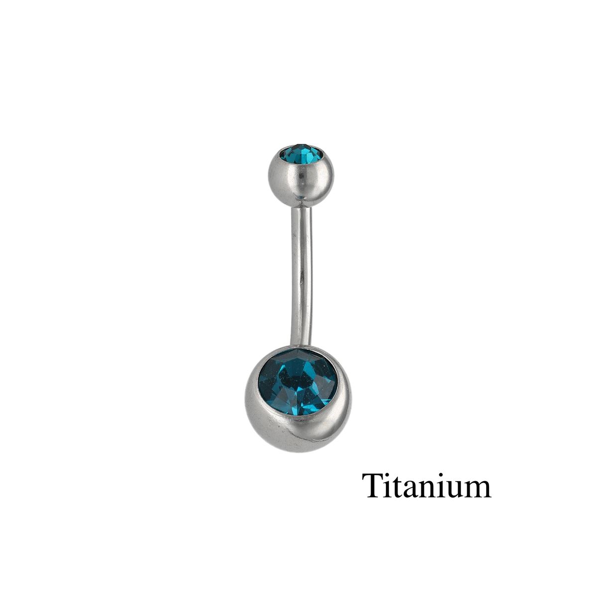 Navelpiercing in titanium met dubbele turquoise kristallen