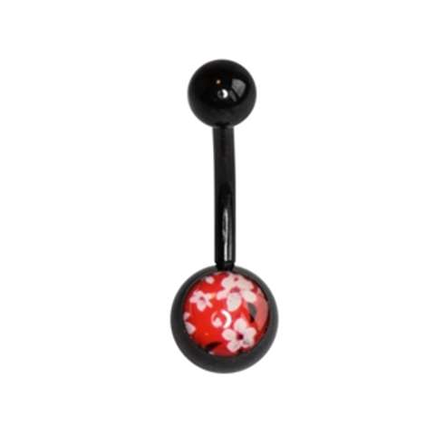 Navelpiercing in zwart chirurgisch staal, bloem rood
