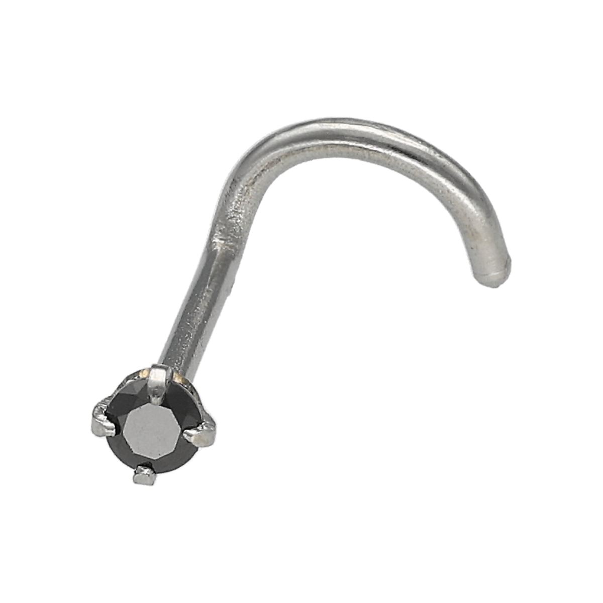 Neusknopje in chirurgisch staal met een zwarte "prong" setting kristal met kromming