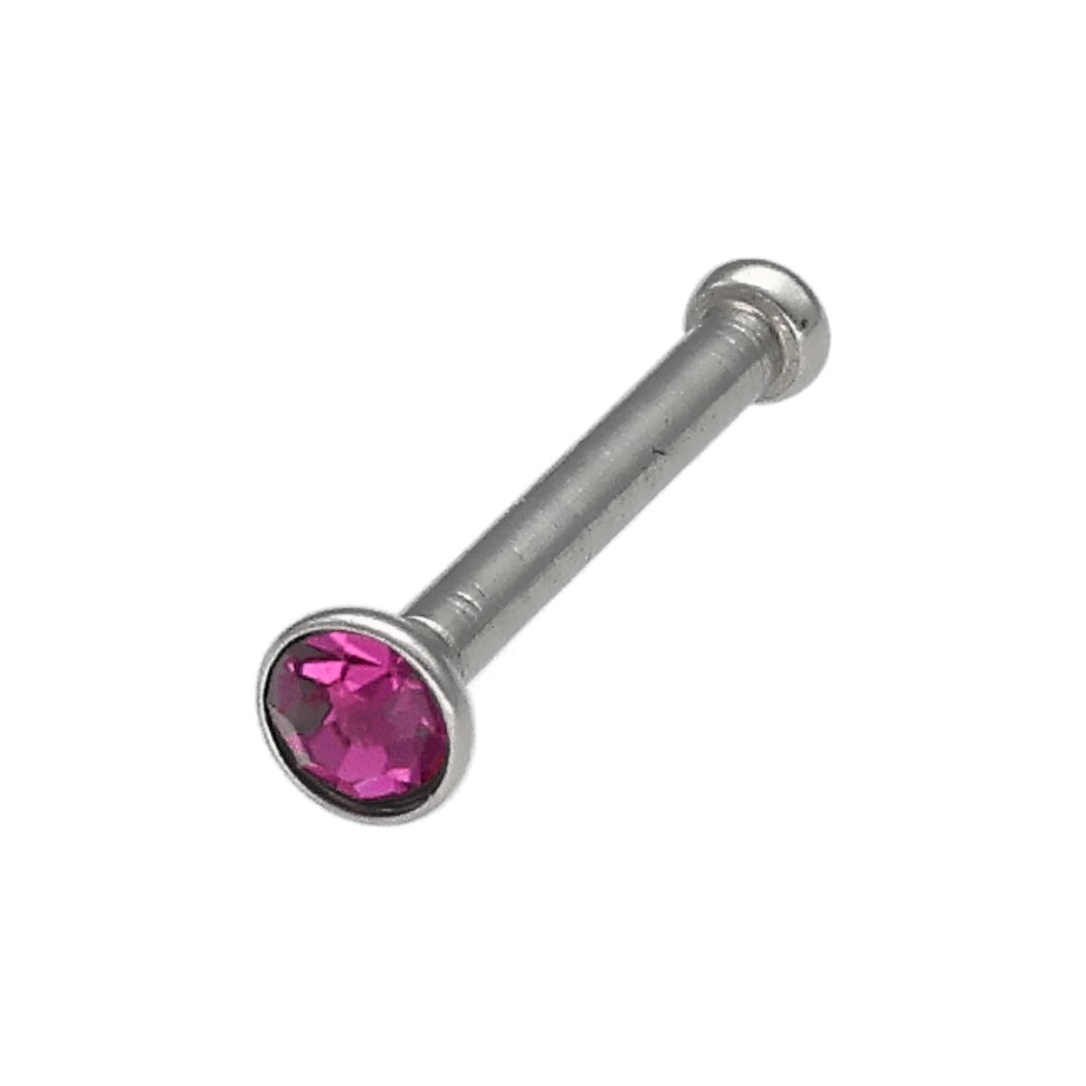 Neusknopje in chirurgisch staal, recht met fuchsia kristal
