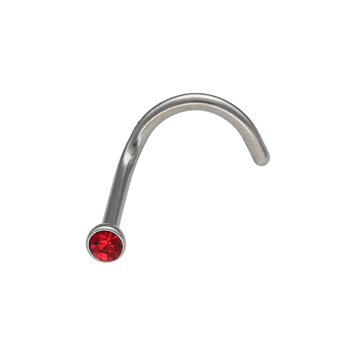 Neusknopje in chirurgisch staal, rode kristal met kromming