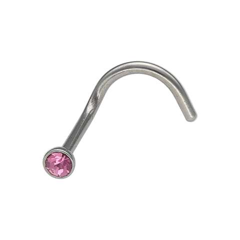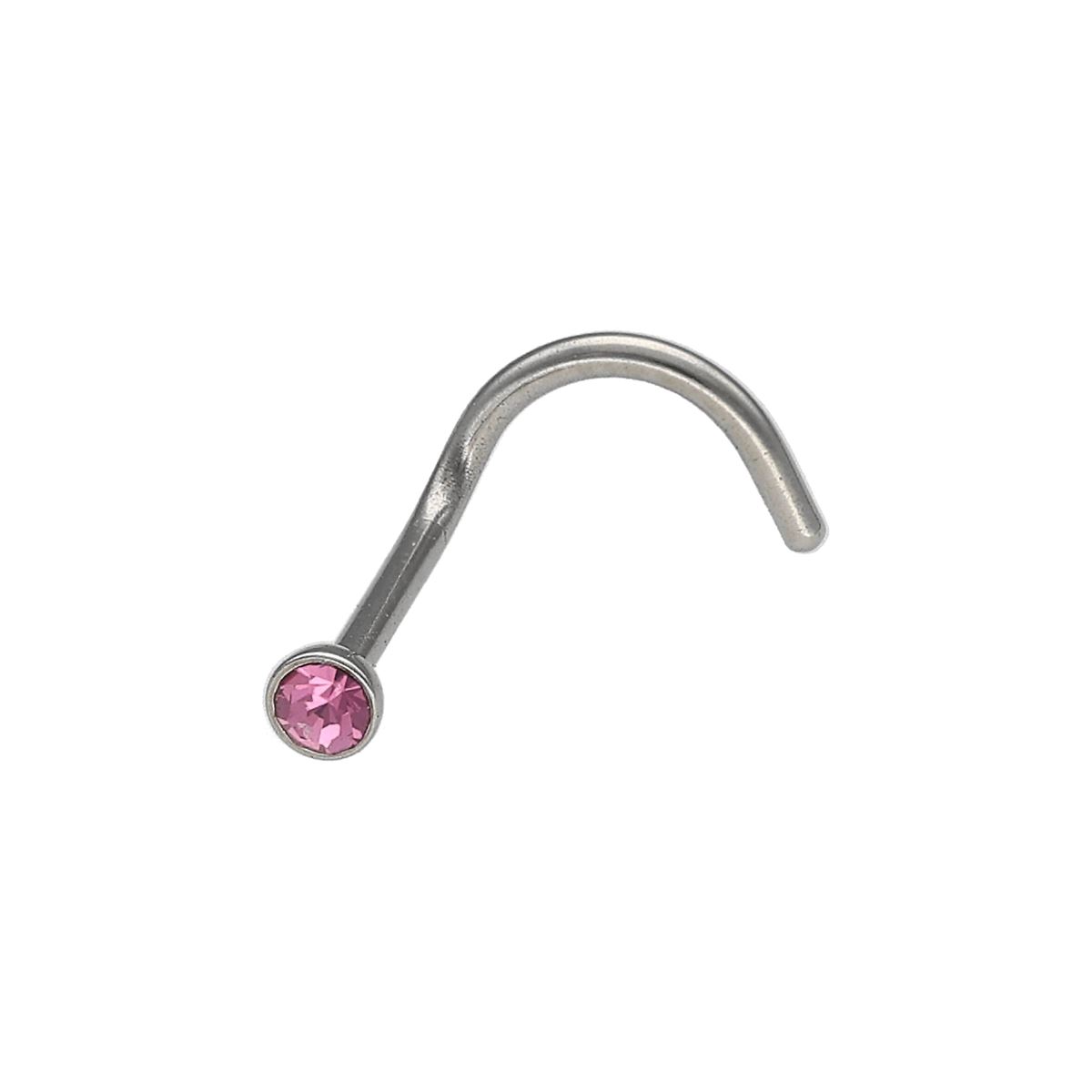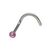 Neusknopje in chirurgisch staal, roze kristal met kromming