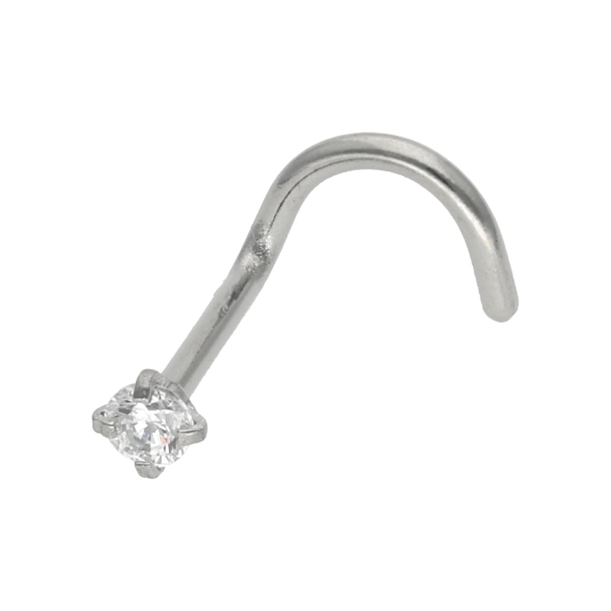 Neusknopje in chirurgisch staal, witte "prong" setting kristal met kromming