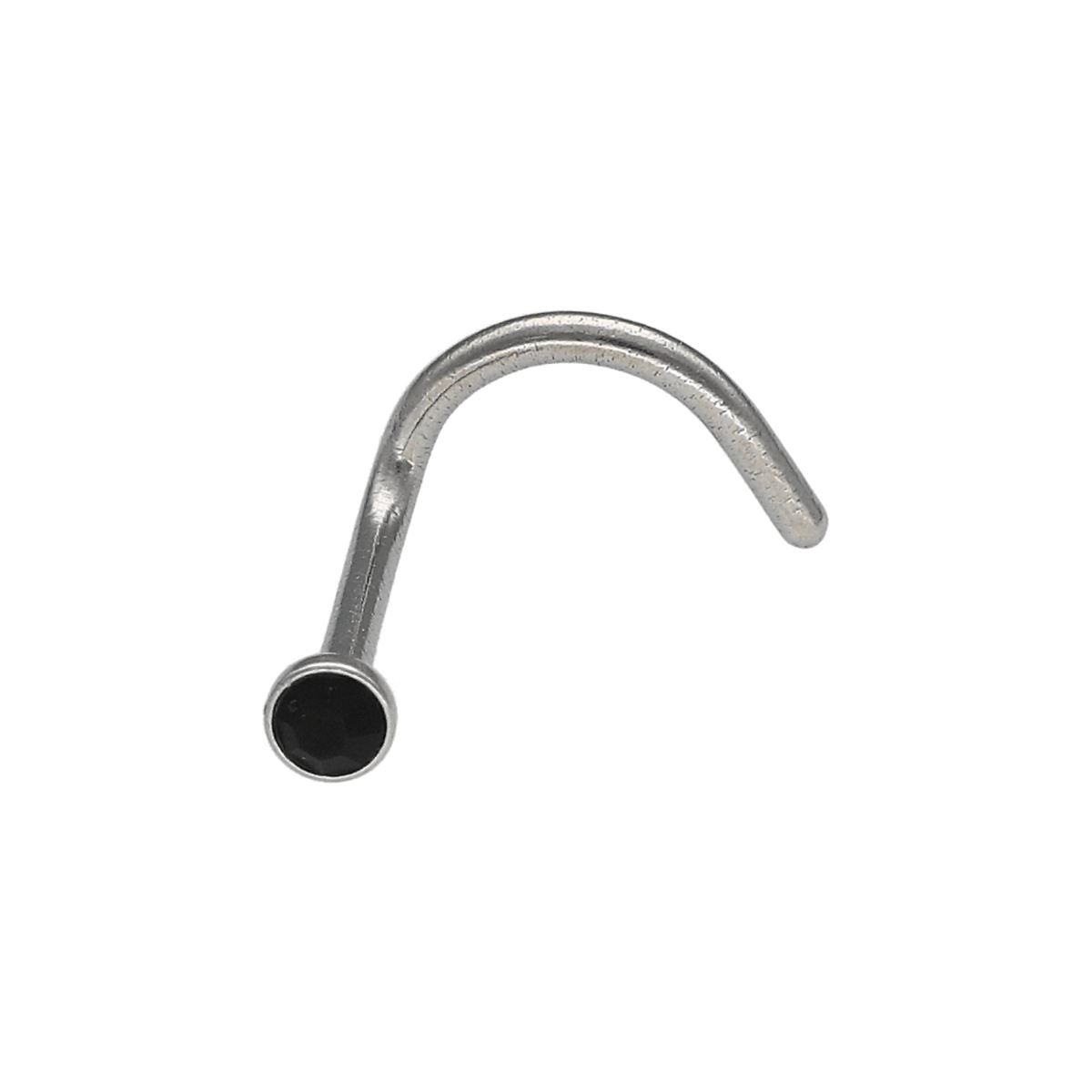 Neusknopje in chirurgisch staal, zwarte kristal met kromming