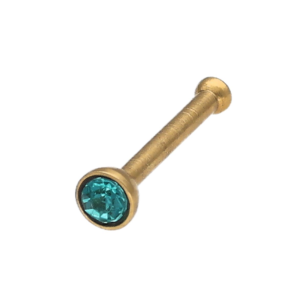 Neusknopje in goud chirurgisch staal, recht met een turquoise kristal