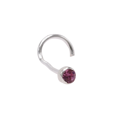 Neusknopje in zilver 925% met gebogen staafje en paarse kristal