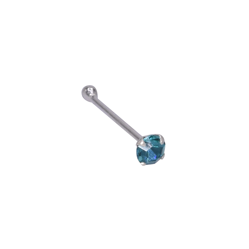 Neusknopje in zilver 925%, recht met een turquoise "prong" setting kristal