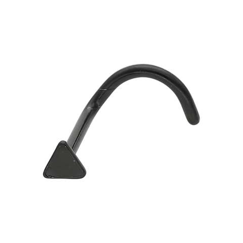 De neuspiercing is gemaakt van hoogwaardig chirurgisch staal 316L en is voorzien van een zwarte PVD-coating. De piercing heeft een dikte van 0,8 mm en een staaflengte van 6,5 mm. De spiraal geeft de piercing een betere grip in de neus. Diameter van de driehoek bedraagt 2 mm.