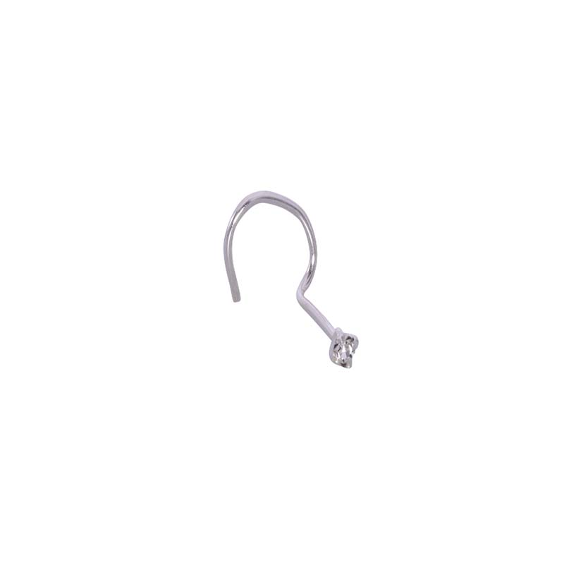 Neuspiercing in zilver 925%-kromming met een witte kristal