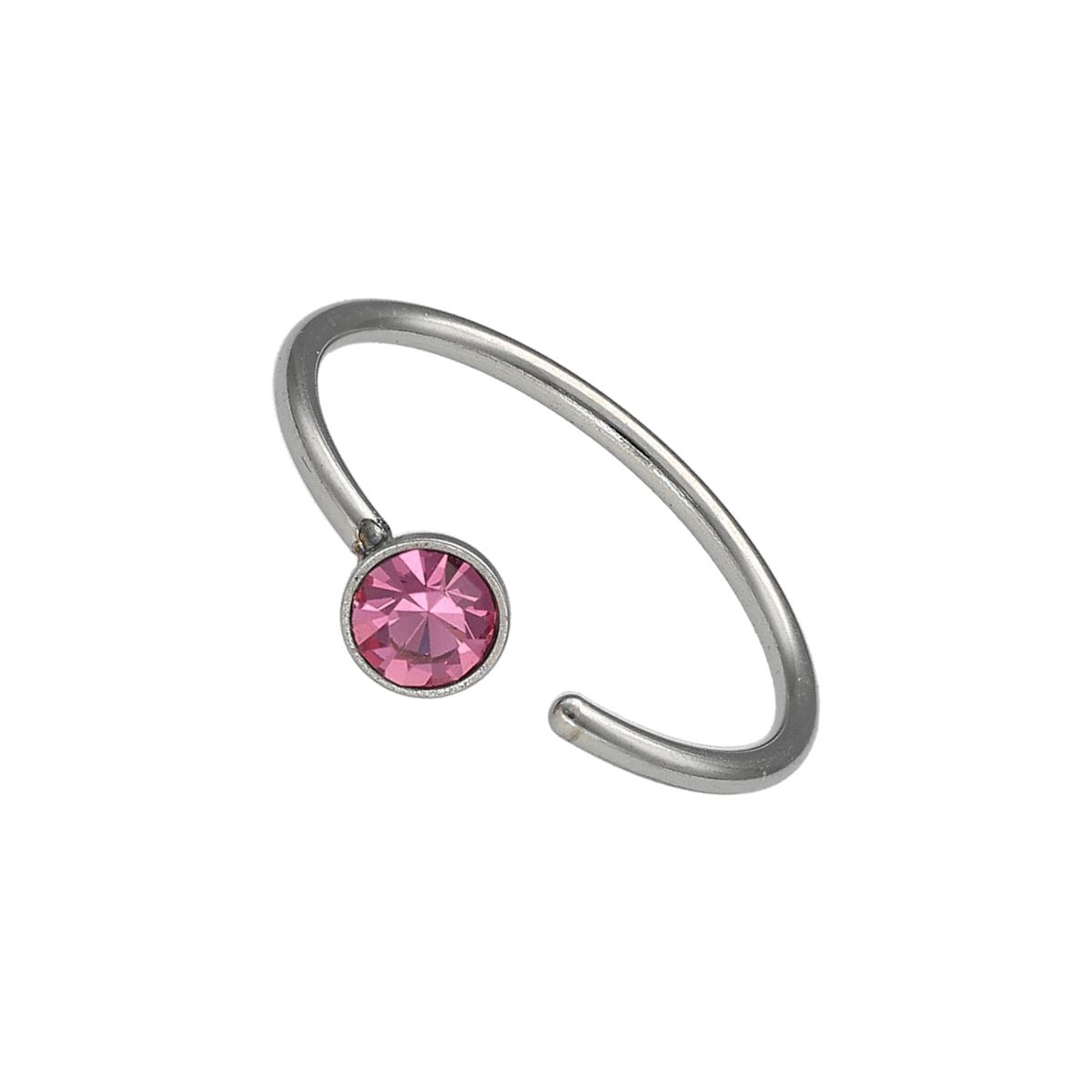 O-ring in chirurgisch staal, plooibaar met roze kristal