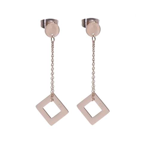 Oorbellen in rosé goud chirurgisch staal, hanger met een open vierkant