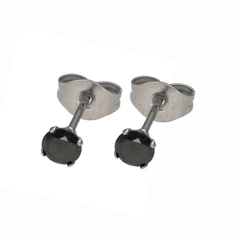 Oorknopjes in chirurgisch staal, zwarte ronde kristallen.