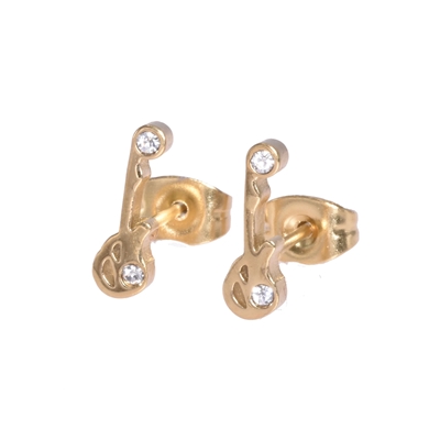 Oorknopjes in goud chirurgisch staal, gitaar met een klein wit kristalletje