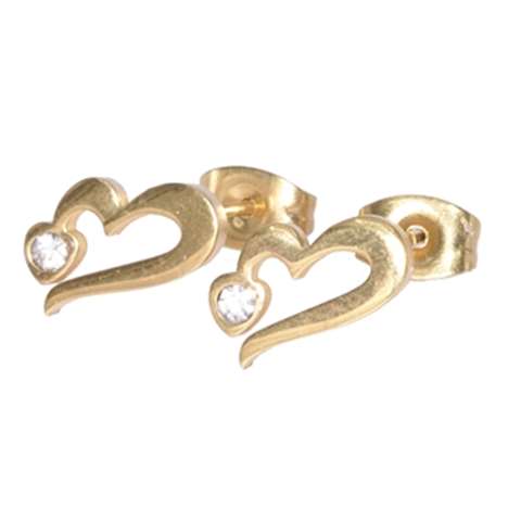 Oorknopjes in goud chirurgisch staal met een hartje en een klein wit kristalletje