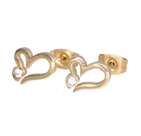 Oorknopjes gemaakt in chirurgisch staal en afgewerkt met een gouden P.V.D coating. Door de hardheid van het staal vervormen de sieraden nooit of nauwelijks. Bovendien zijn al onze producten uit het assortiment zeer comfortabel & veilig te dragen en uiteraard nikkelvrij! De lengte van het hartje bedraagt10 mm en de breedte 6 mm.