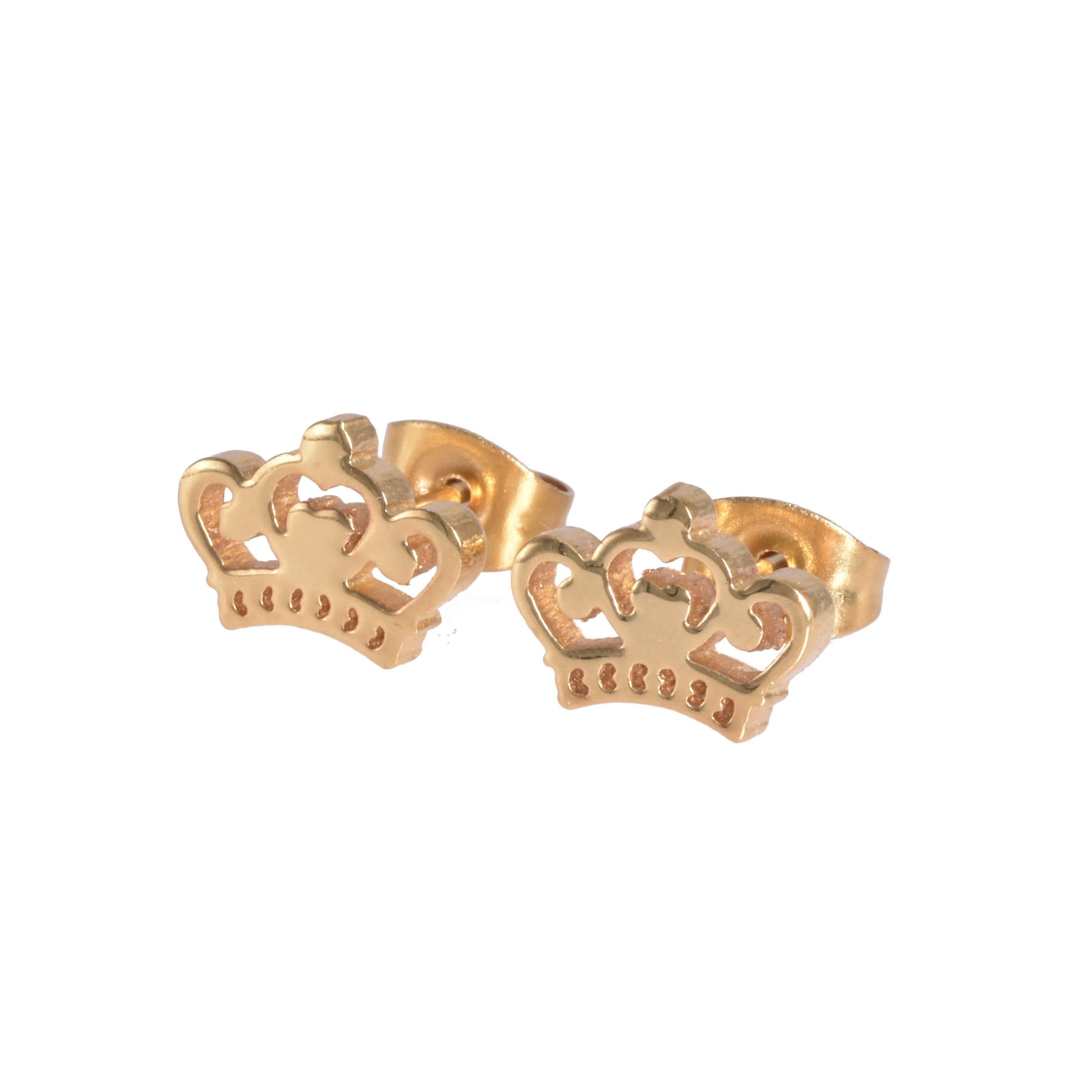 Oorknopjes in goud chirurgisch staal met een kroontje