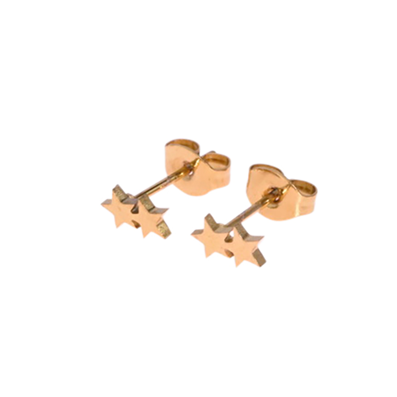 Oorknopjes in staal, goudkleurig met 2 sterren
