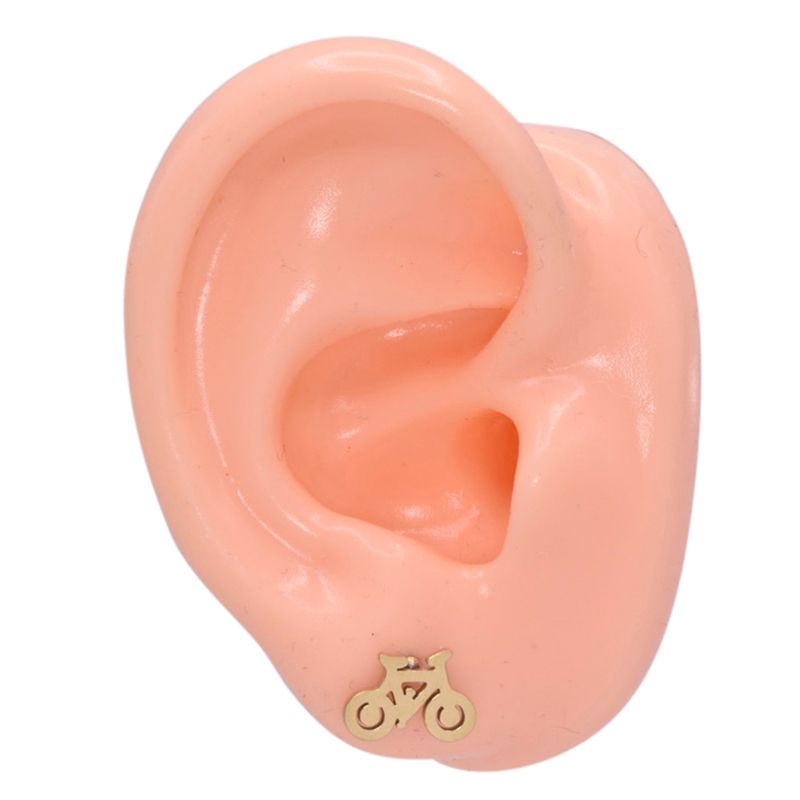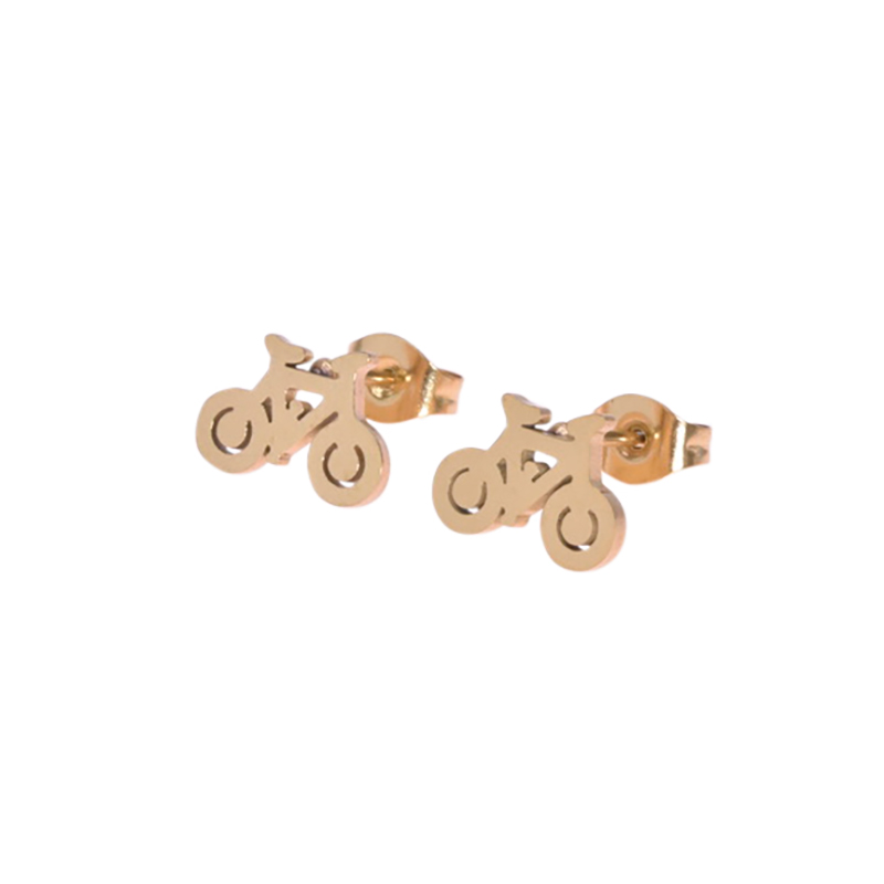Oorknopjes in staal, goudkleurig met een fiets