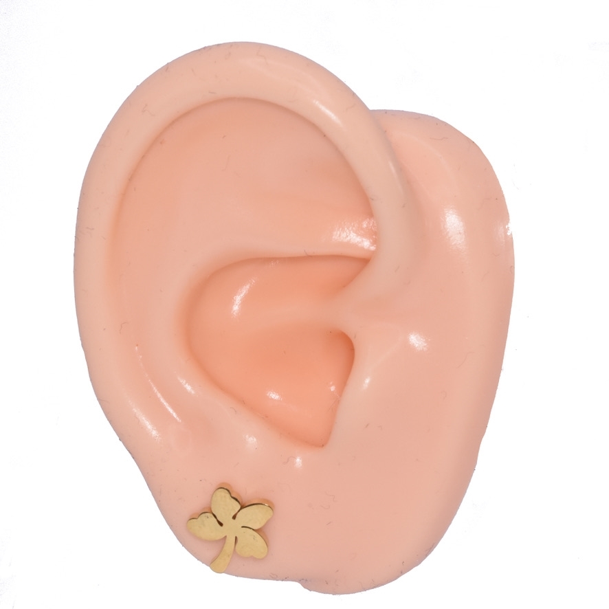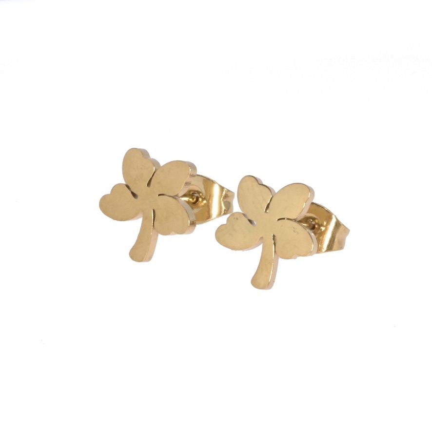 Oorknopjes in staal, goudkleurig met een klavertje 4