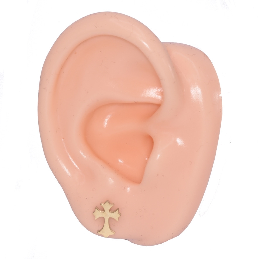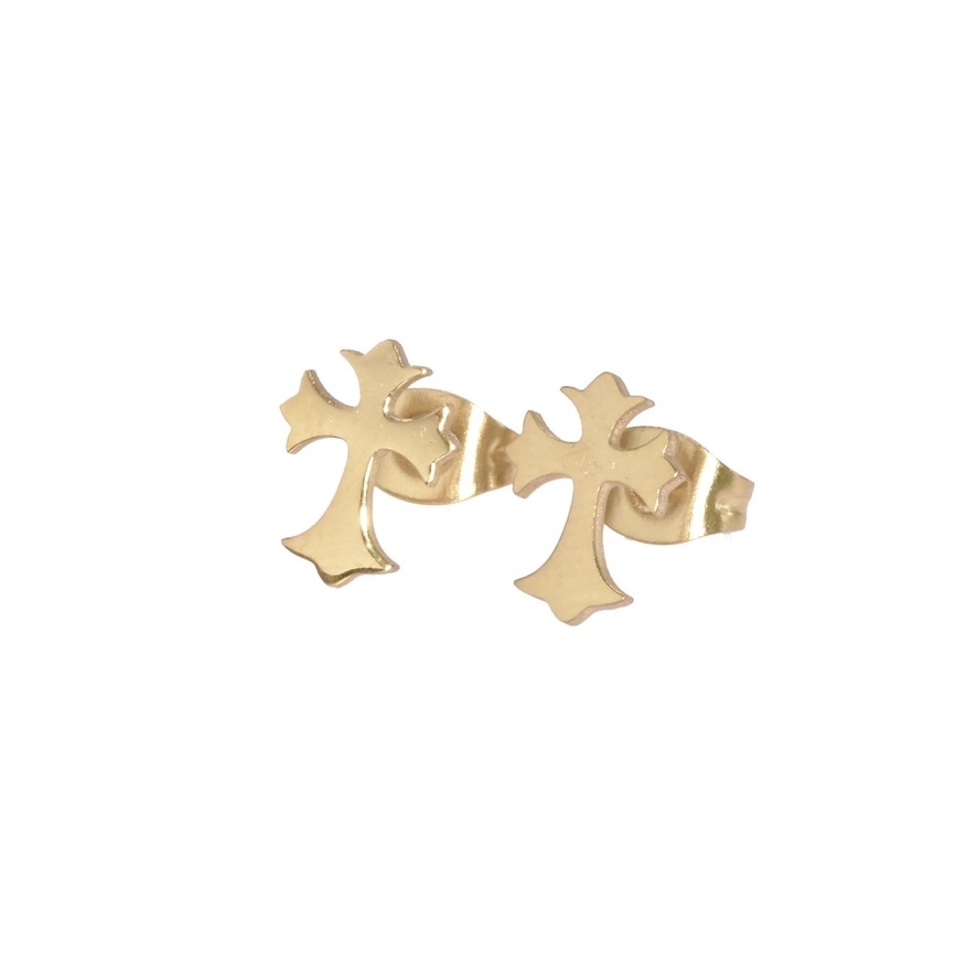 Oorknopjes in staal, goudkleurig met een klein kruisje