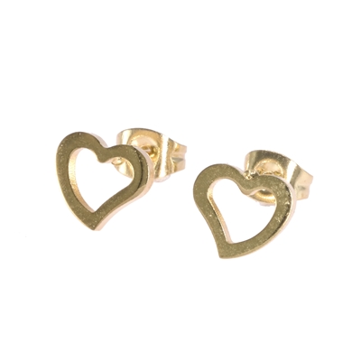 Oorknopjes in staal, goudkleurig met een open hart