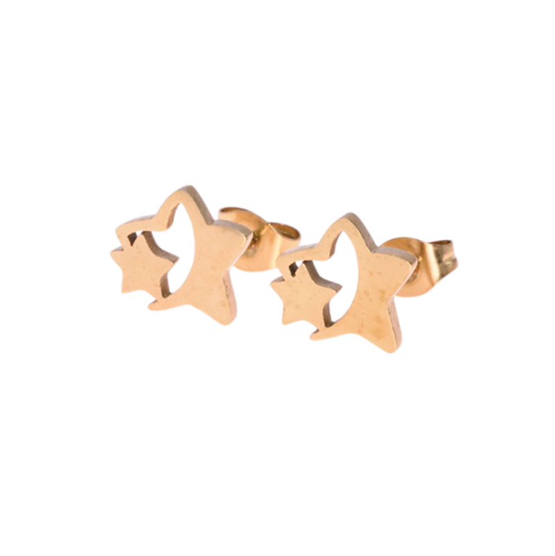 Stijlvolle stalen oorknopjes bedekt met een goudkleurige PVD-coating.