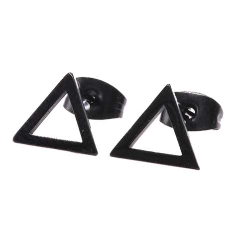 Oorstekertjes in staal met een mooi afgewerkte zwarte open driehoek.