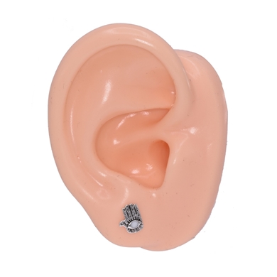 Oorknopjes in zilver 925% met een fatima hand en een klein wit steentje