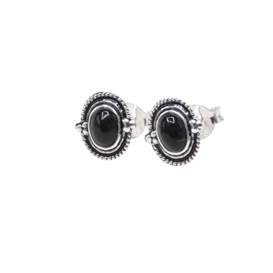Mooie zilver oorknopje met een klein zwart opaal steentje.