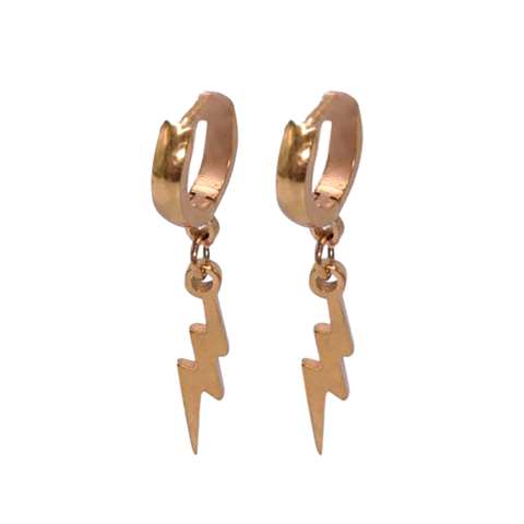 Chirurgisch Stalen Oorbellen met een hangertje in de vorm van een bliksem.