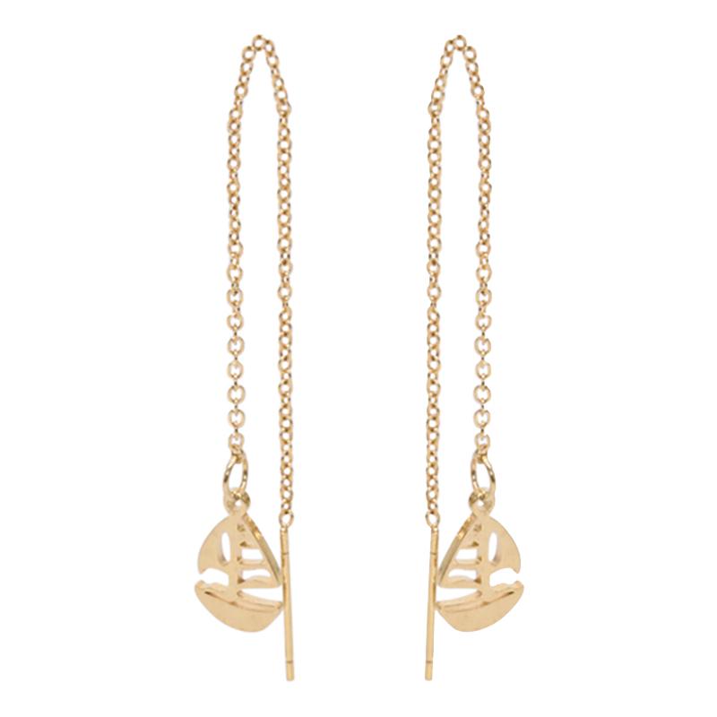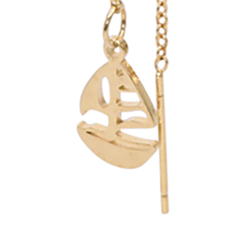 Oorringen in staal, goudkleurig met een zeilboot