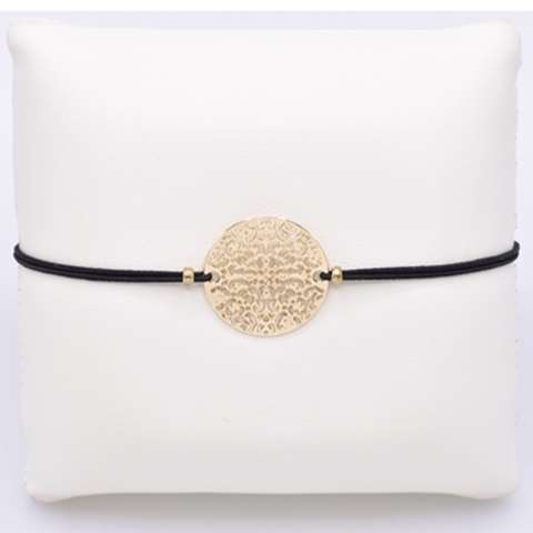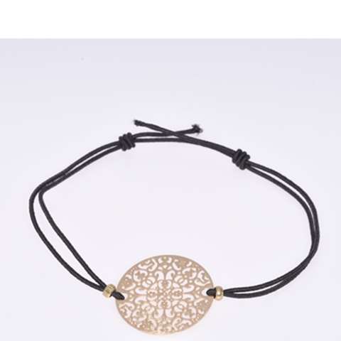 Prachtige ornament armband met een staal oosters muntje. Het elastische textielbandje zorgt voor een comfortabele pasvorm en is individueel in maat verstelbaar. De diameter van het muntje bedraagt 2 cm.