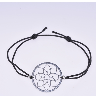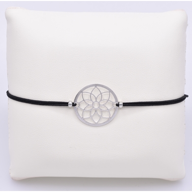 Prachtige ornament armband met een staal oosters muntje. Het elastische textielbandje zorgt voor een comfortabele pasvorm en is individueel in maat verstelbaar. De diameter van het muntje bedraagt 2 cm.