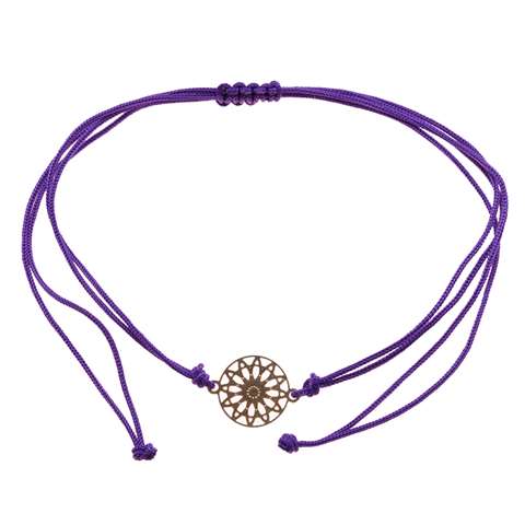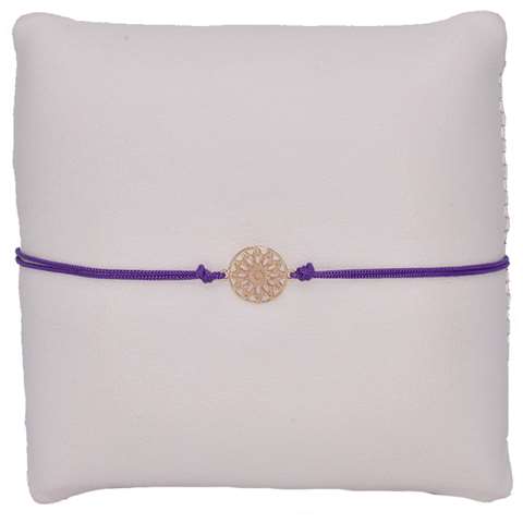 Paarse koordarmband met een gouden muntje in het midden! Dit armbandje is verstelbaar met een pull-tie sluiting en past om iedere pols. Pull-tie sluiting betekent simpel gezegd dat je het makkelijk zelf om en af kunt doen door aan de koordjes te trekken! De diameter van het muntje bedraagt 10 mm.