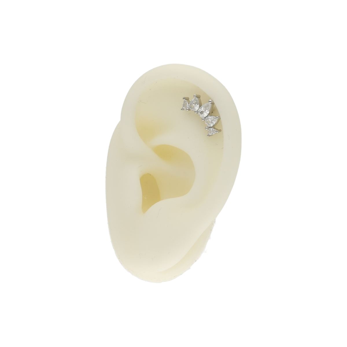 Labret/helix/tragus piercing in chirurgisch staal kroon met 5 witte kristallen