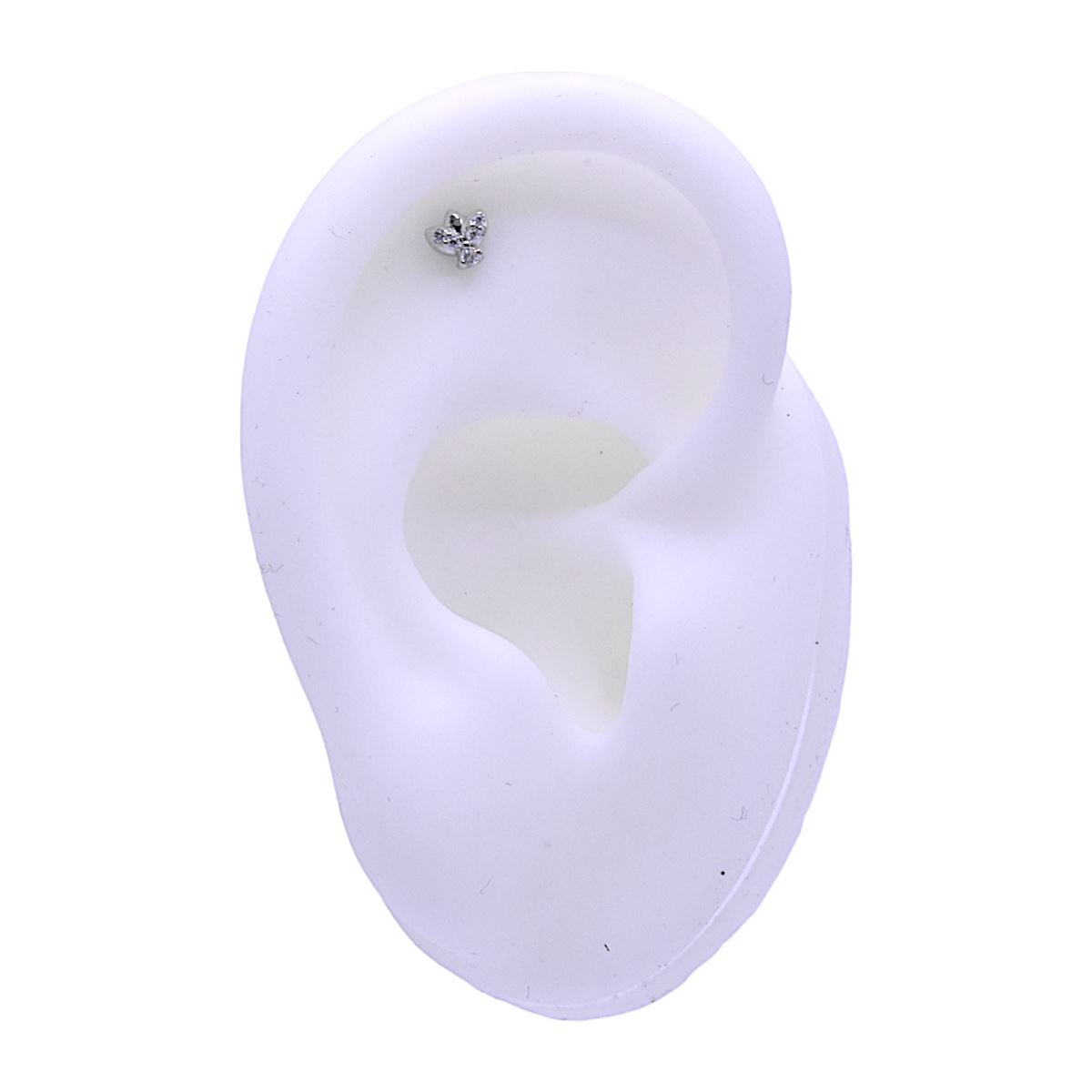 Labret/helix/tragus piercing in chirurgisch staal motief bedekt met witte kristallen