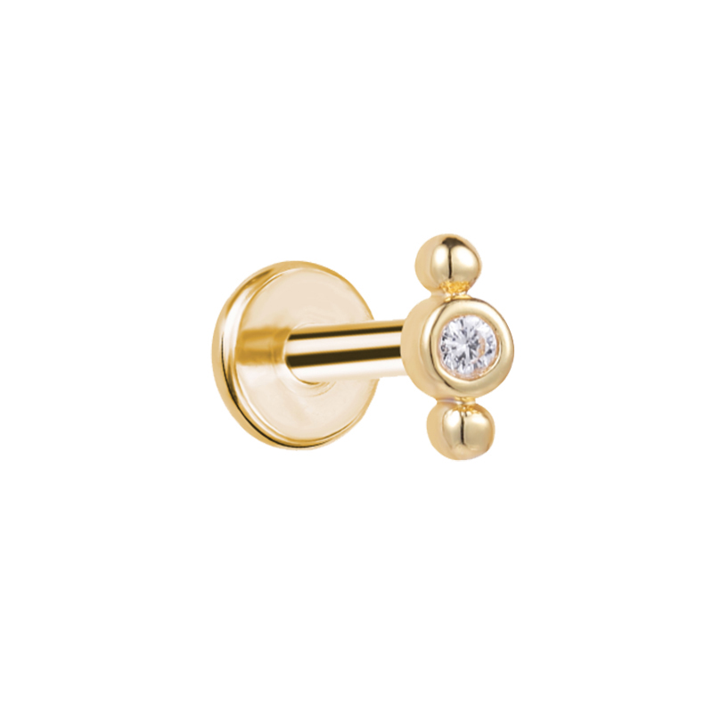 Labret/helix/tragus piercing in goud chirurgisch staal kristal met 2 kleine bolletjes