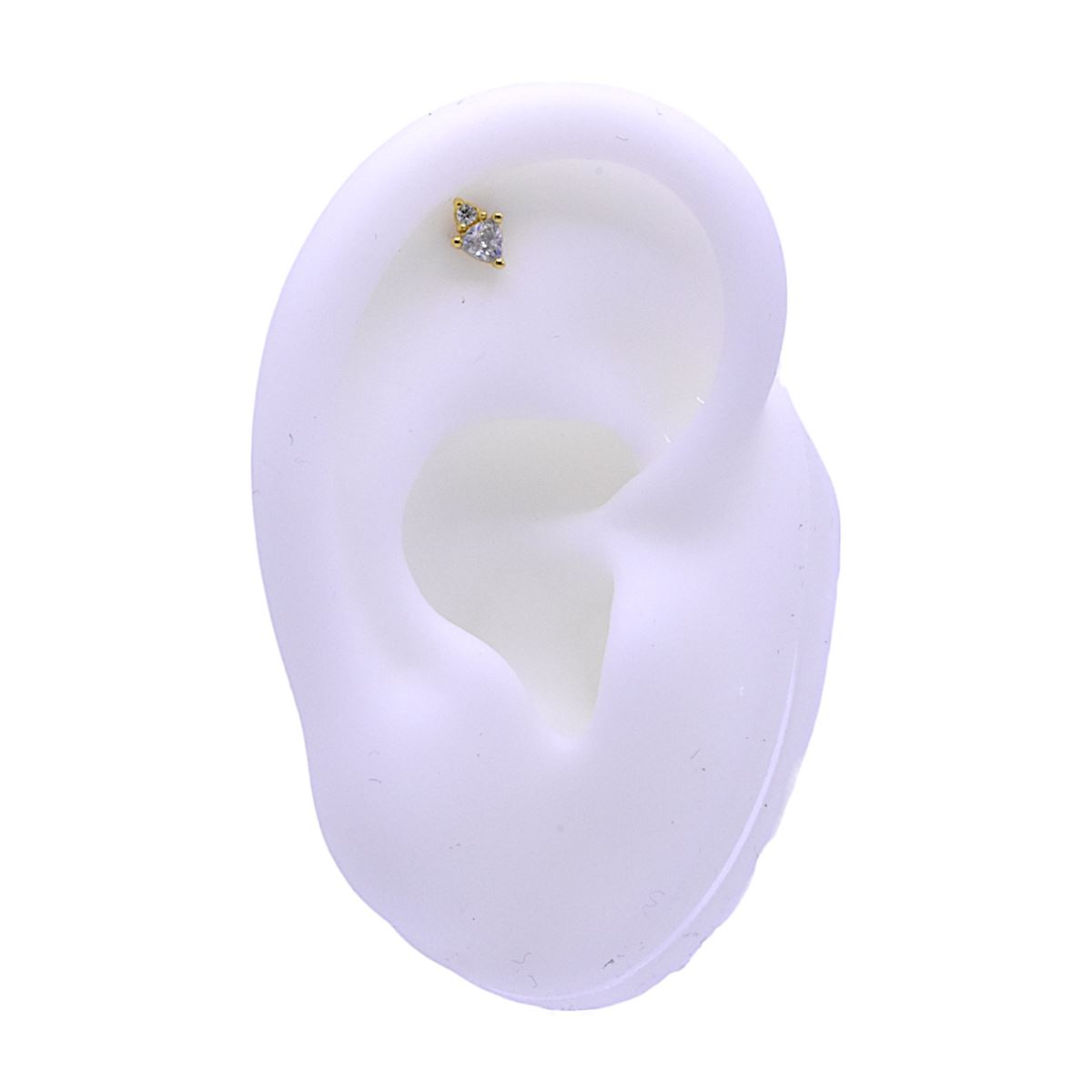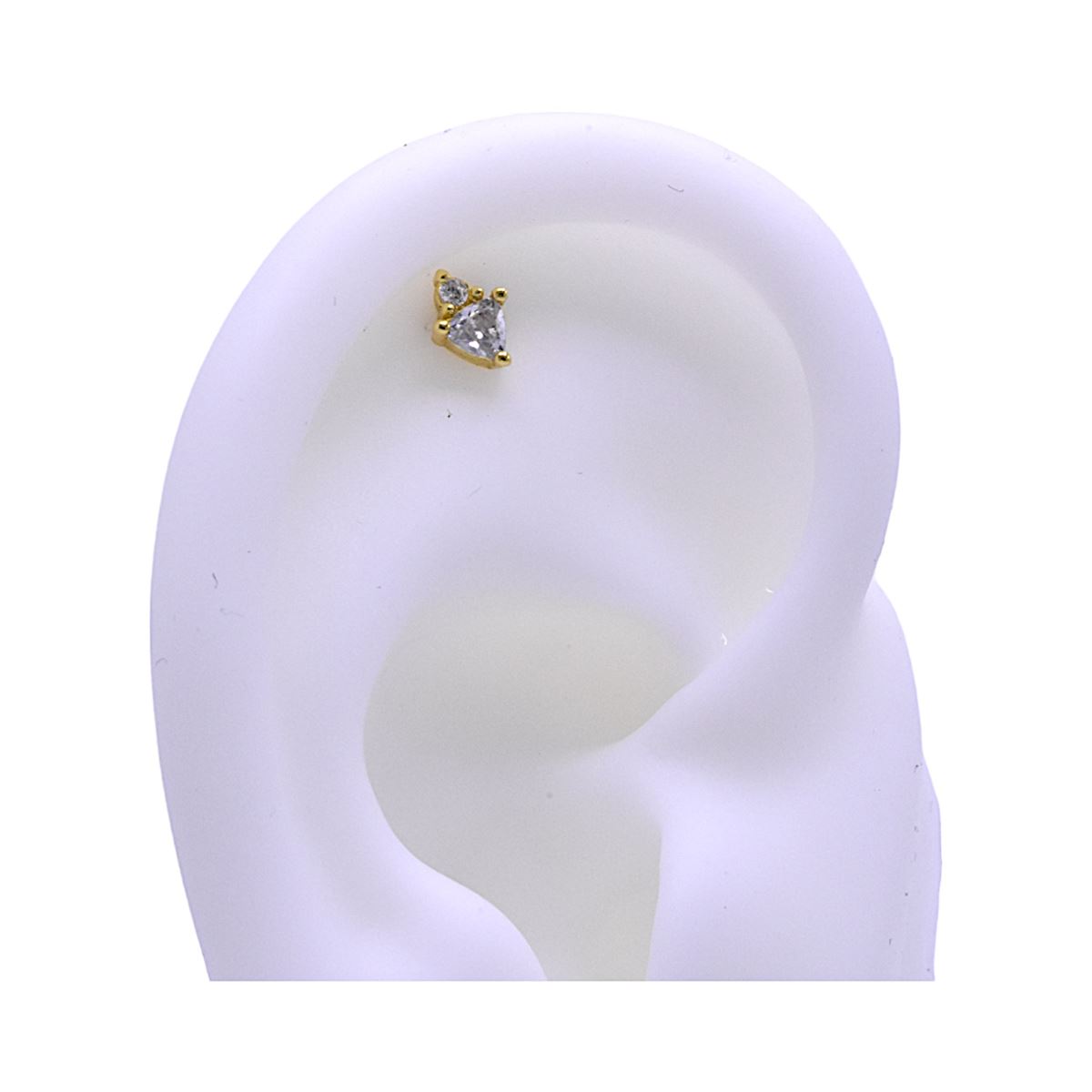 Labret/helix/tragus piercing in goud chirurgisch staal motief met 2 witte kristallen
