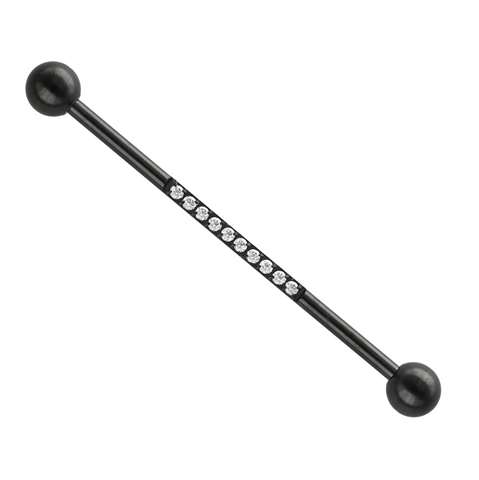 Industrial piercing in zwart chirurgisch staal, staaf met witte ingegraveerde kristallen