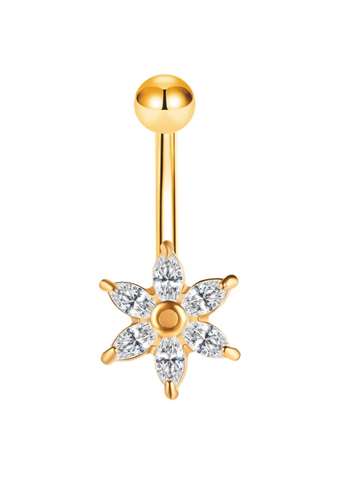 Navelpiercing in goud chirurgisch staal met een bloem motief