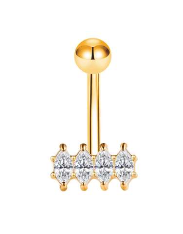 Navelpiercing in goud chirurgisch staal motief met 4 witte kristallen
