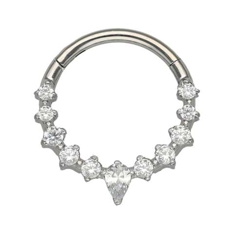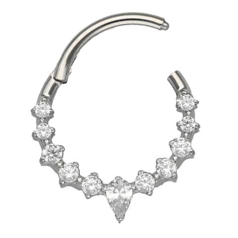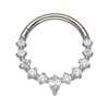 Segmentring/clicker in chirurgisch staal bedekt met 11 witte kristallen