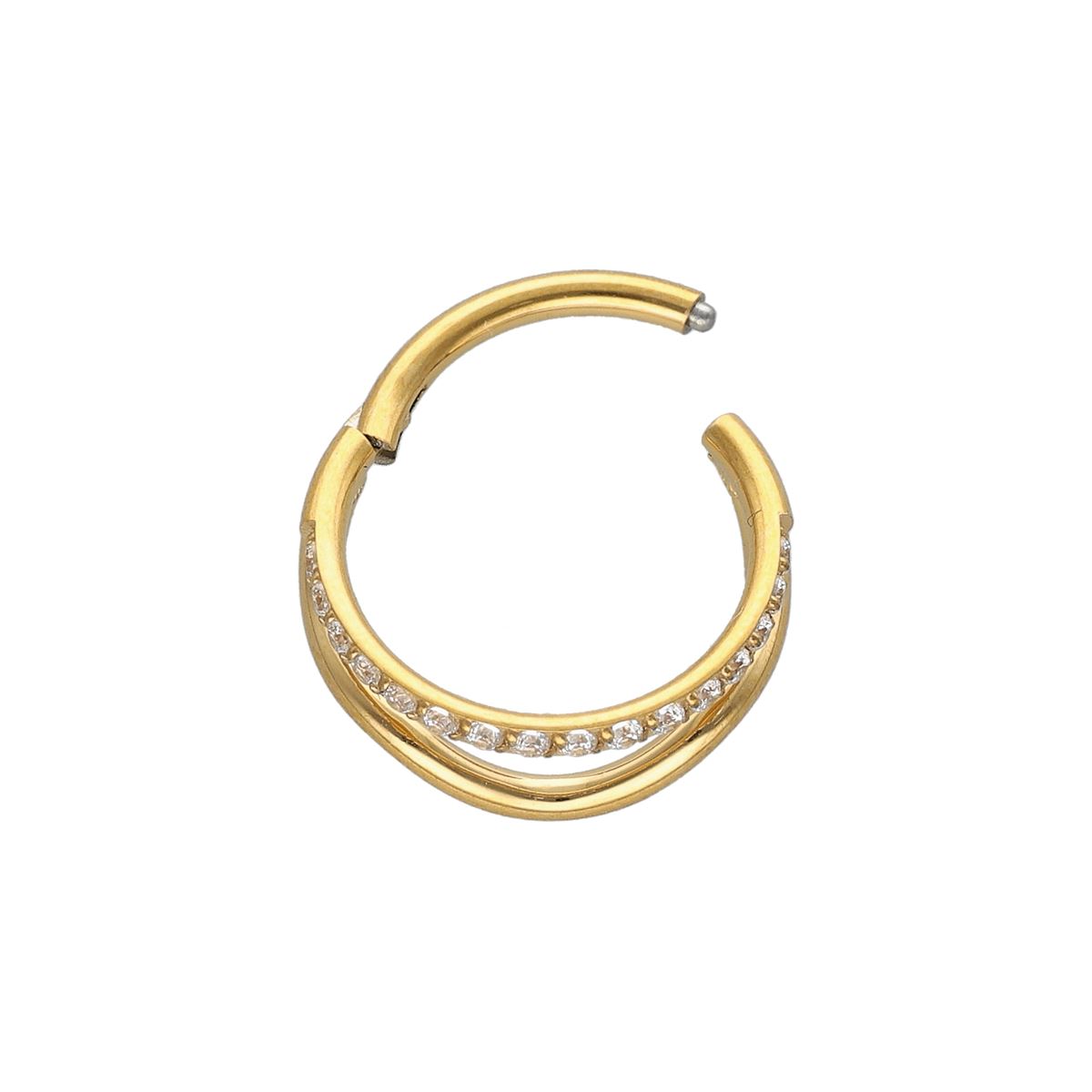 Segmentring/clicker in goud chirurgisch staal dubbele rij waarvan 1 bedekt met kristallen